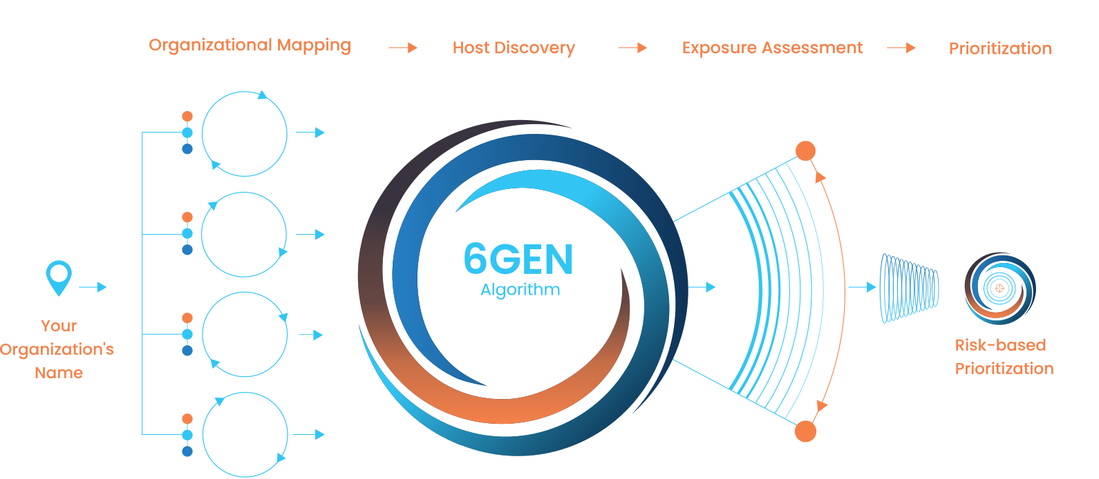 SixMap’s discovery procedure has two main components: our unique mapping methodology and 6Gen, our core technology. SixMap’s methodology begins by mapping out an organization’s structure, finding all subsidiaries, holding companies, shell companies, and other legal entities that belong to the parent organization globally. Each of these entities serves as a starting point for the asset discovery process, which uncovers all networks, IP addresses, and domains.